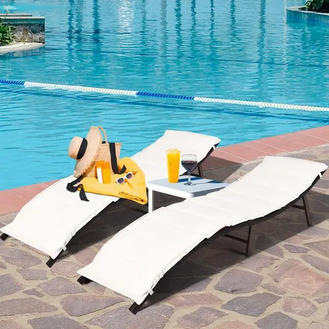 Steel Frame with Exquisite Wicker: Made of heavy-duty steel, the frame of the chaise lounge is solid enough to hold up to 400 lbs for one lounge chair. Wrapped with tight and exquisite PE wicker, the folding lounge can withstand the fluctuating weather and provides a comfortable zone to relax.