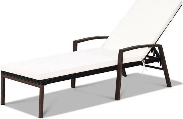 Comfortable Sun Lounger: Coming with a unique design, this chaise lounge chair combines the function of the chair and bed to meet your different requirements. Equipped with a soft and spacious cushion, this lounge chair will provide you with comfortable rest space.