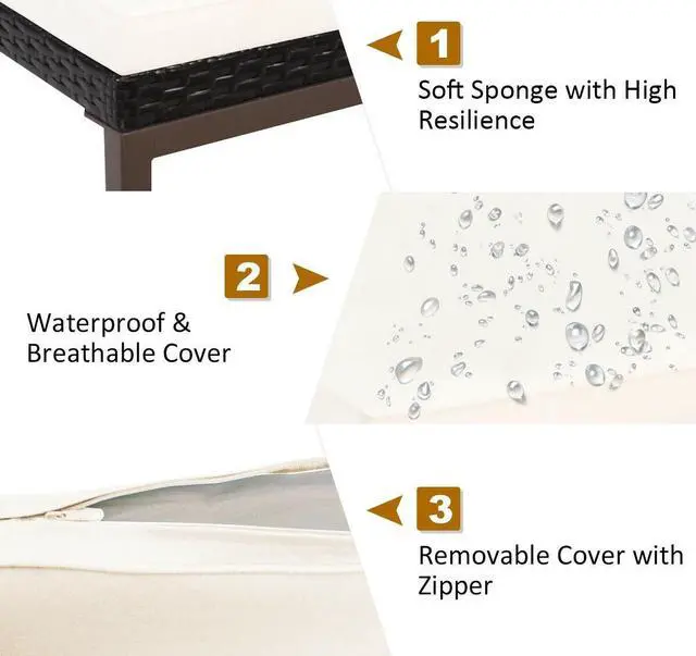 Premium Materials for Stable Frame: This lounge chair is made of premium PE rattan, which is weather-resistant and durable. The construction of the sun lounger has a sturdy steel frame for high bearing capacity. Besides, the wear-resistant cover with smooth zippers can be removed for easy cleaning.