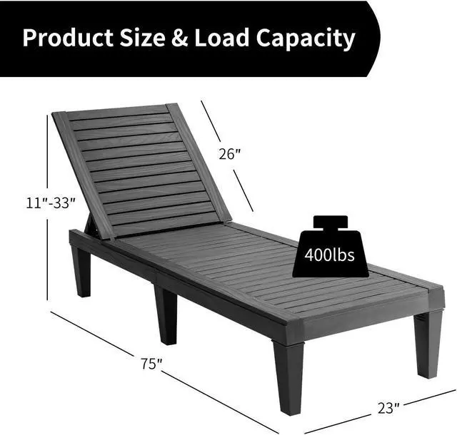 Well-chosen Material and Sturdy Frame: This recliner chair is made of wear-resistant PP material, which is durable enough to resist sunlight and rain for year-round use. Stable construction ensures a strong load-bearing capacity and can support up to 400 lbs. In addition, 6 reinforced legs offer adequate support and stability.