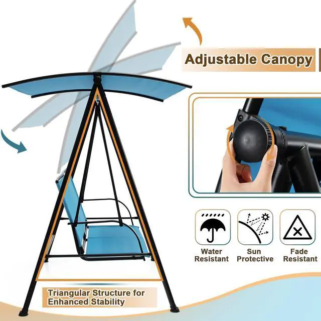 Suitable for Diverse Occasions: With a minimalist and modern style, the outdoor canopy swing loveseat matches various occasions well. Place it on the patio, in the garden, by the poolside Then, you are capable of enjoying hours of outdoor relaxation.