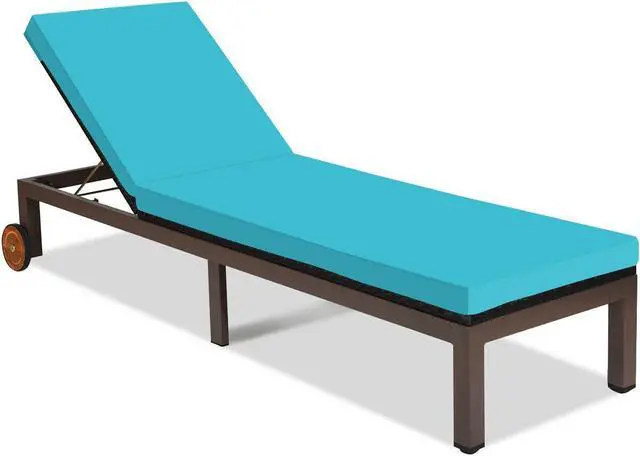 Adjustable Backrest and Removable Wheels: This patio chaise lounge chair can be adjusted to satisfy your different needs, featuring its seven back tilting positions. With two flexible wheels on both sides, the patio chaise lounge chair can be easily moved from patio to garden as you like, reducing a little bulkiness.