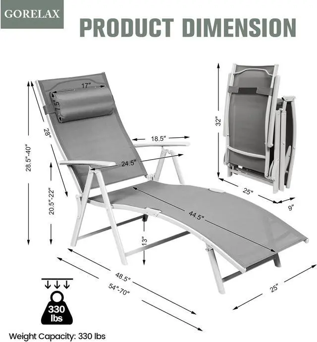 Lightweight and Foldable Design: This lounge chair does not need to be installed, just unfold the chair and fix the cushion and headrest to use. Lightweight and portable design makes it easy to transport or carry anywhere. In addition, it can be folded quickly to facilitate storage without taking up too much space.