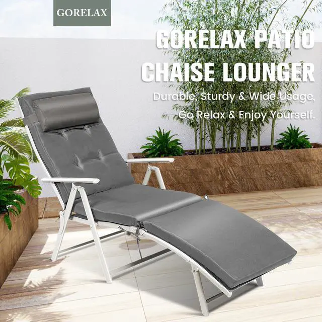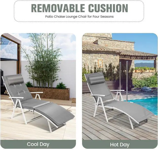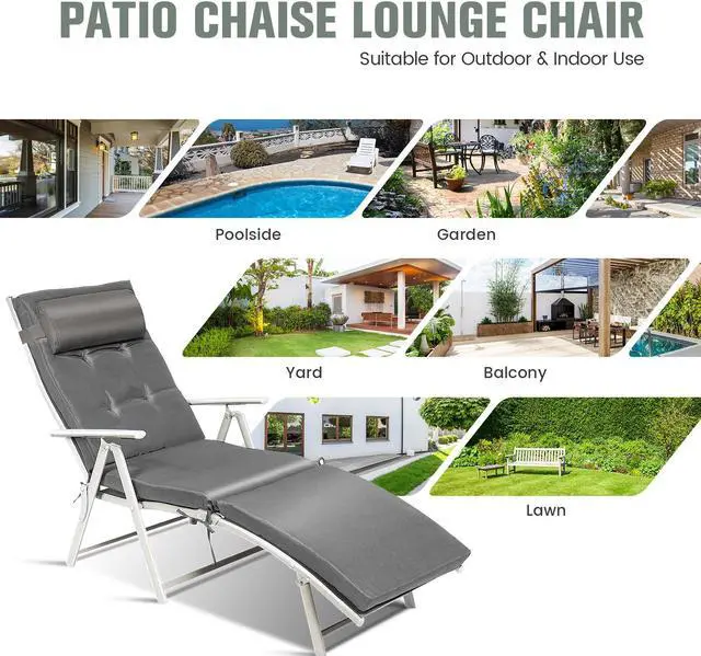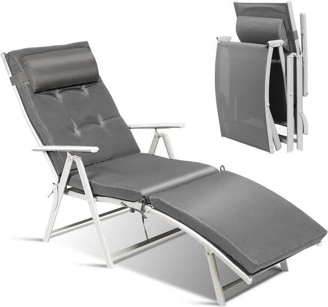 Cushion and Pillow Included: This recliner includes a removable cushion and headrest to provide you with additional comfort. The 2.5" thick high-density sponge is soft and does not easily collapse. Most importantly, the cushion can be fixed to the chair with straps to avoid movement. You can enjoy your time or nap on the chair at the beach, poolside, balcony, backyard, etc.