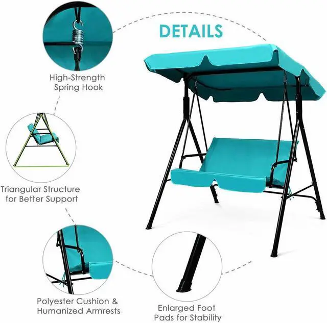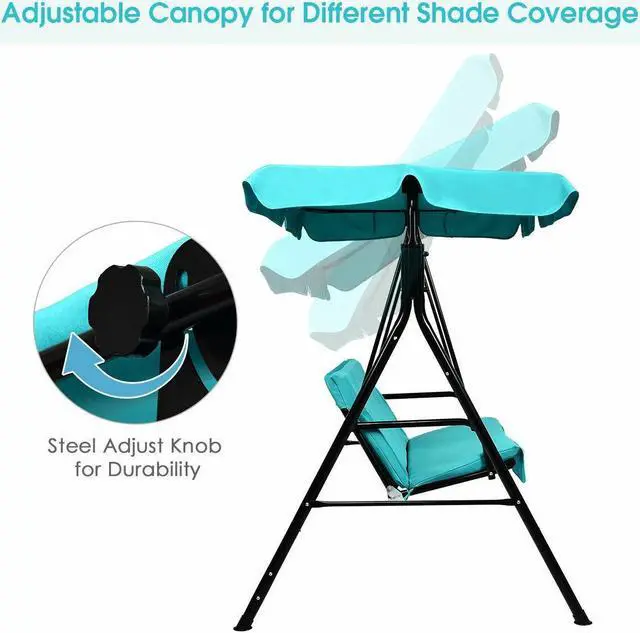 Waterproof and UV protection: Polyester and oxford cloth is waterproof and powder-coated finish is rust-resistant. You can leave the swing outdoors after late-night barbeques and gatherings. In sunny days canopy will protect you from suns harmful UV rays.