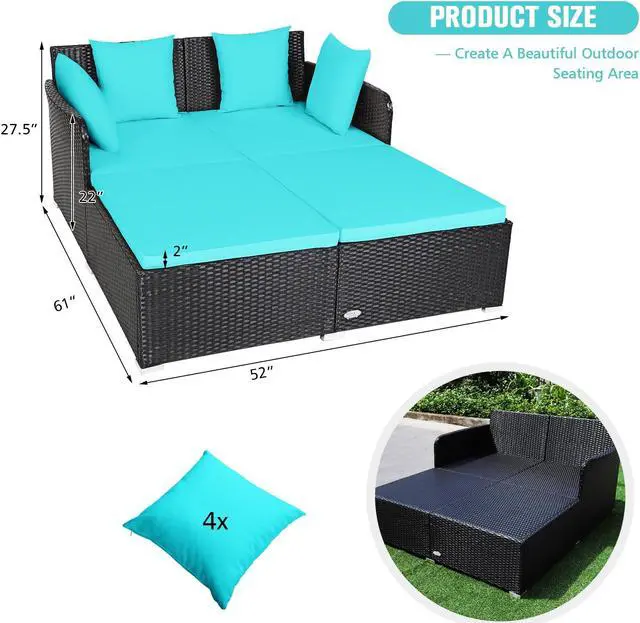 Spacious Rest Space: Compared to the average lounge chair, this rattan daybed with overall size of 61" x 52" x 27.5" (L x W x H) is roomy enough to be friendly for people who are tall without any discomfort of crowding. This rattan sofa bed even allows you to chat with your best friends while lying down and enjoying your leisure time.