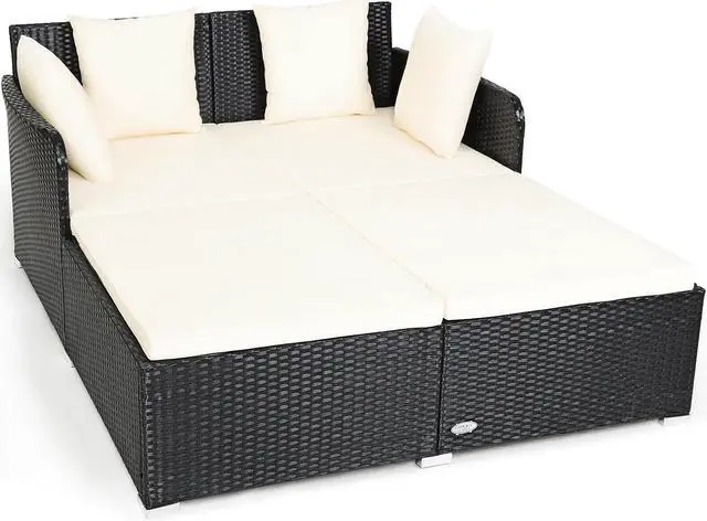 Weather-resistant Rattan and Sturdy Structure: Weather-resistant rattan can adapt to bad outdoor climates to provide you with long-term service. Composed of an X-shaped structure, this rattan bed can carry 800 pounds of excellent weight. The bottom aluminum foot pads feature excellent durability and are not easy to break.