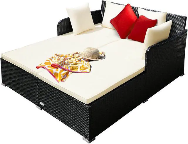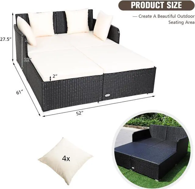 Spacious Rest Space: Compared to the average lounge chair, this rattan daybed with overall size of 61" x 52" x 27.5" (L x W x H) is roomy enough to be friendly for people who are tall without any discomfort of crowding. This rattan sofa bed even allows you to chat with your best friends while lying down and enjoying your leisure time.