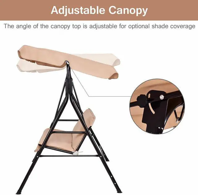 Waterproof and UV protection: Polyester and oxford cloth is waterproof and powder-coated finish is rust-resistant. You can leave the swing outdoors after late-night barbeques and gatherings. In sunny days canopy will protect you from suns harmful UV rays.