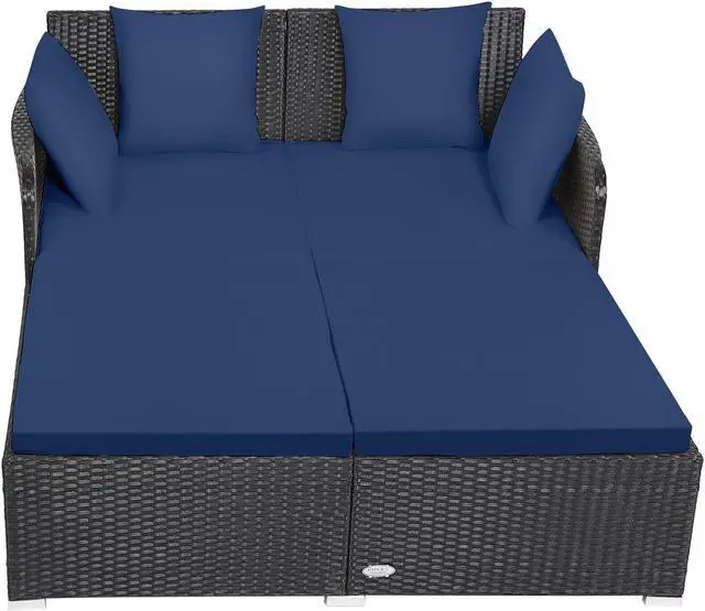 SlickBlue Spacious Outdoor Rattan Daybed with Upholstered Cushions and Pillows
