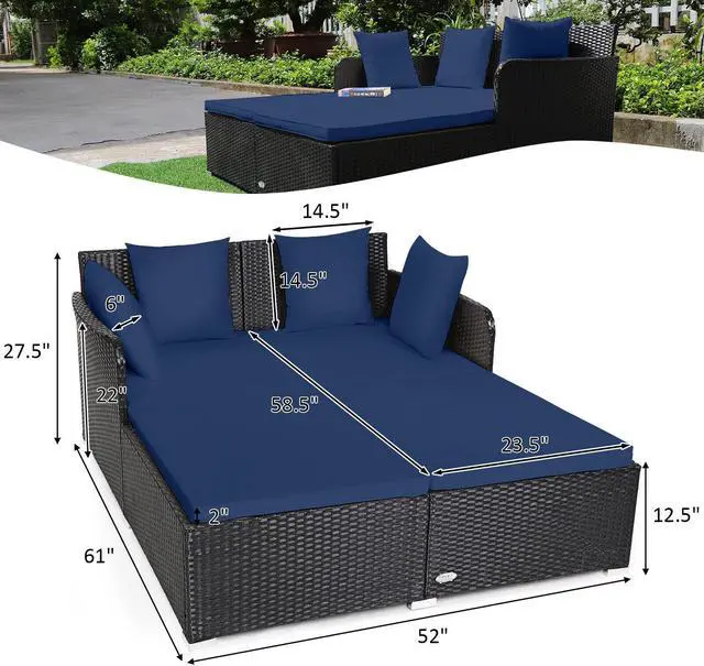 Spacious Rest Space: Compared to the average lounge chair, this rattan daybed with overall size of 61" x 52" x 27.5" (L x W x H) is roomy enough to be friendly for people who are tall without any discomfort of crowding. This rattan sofa bed even allows you to chat with your best friends while lying down and enjoying your leisure time.