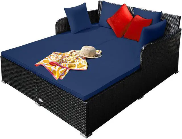 Weather-resistant Rattan and Sturdy Structure: Weather-resistant rattan can adapt to bad outdoor climates to provide you with long-term service. Composed of an X-shaped structure, this rattan bed can carry 800 pounds of excellent weight. The bottom aluminum foot pads feature excellent durability and are not easy to break.