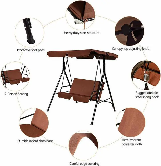 Waterproof and UV protection: Polyester and oxford cloth is waterproof and powder-coated finish is rust-resistant. You can leave the swing outdoors after late-night barbeques and gatherings. In sunny days canopy will protect you from suns harmful UV rays.