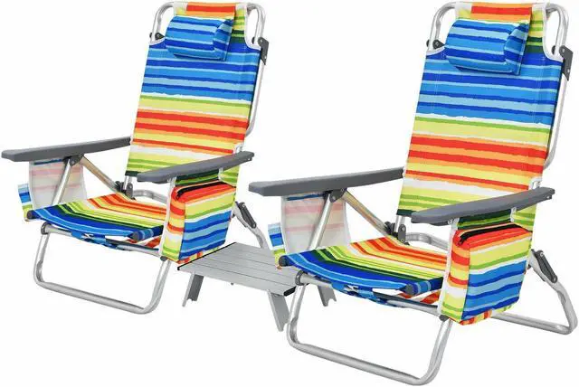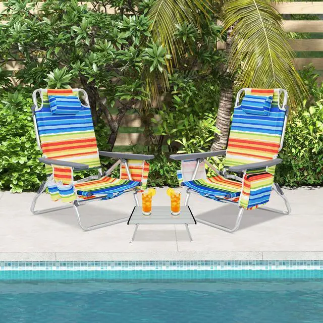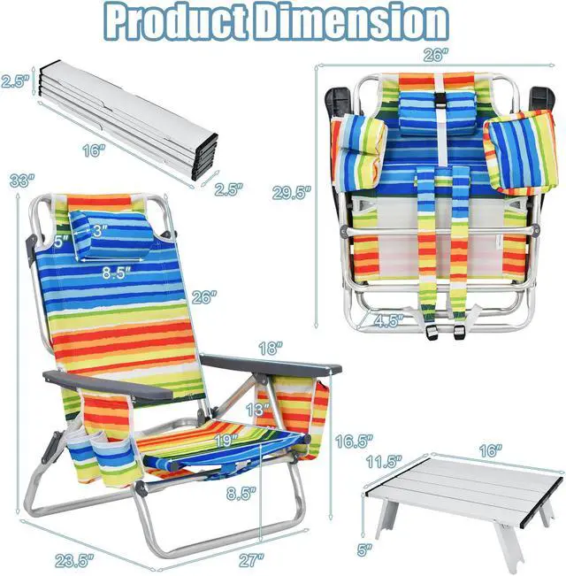 5-position Recline Options: The design of this beach folding chair with 5 inclination angles will bring you a different experience to meet your different needs. This beach folding chair has a locking bracket to prevent the beach chair from suddenly tilting or folding, thus you can use it with confidence.