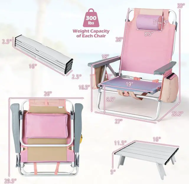 5-position Recline Options: The design of this beach folding chair with 5 inclination angles will bring you a different experience to meet your different needs. This beach folding chair has a locking bracket to prevent the beach chair from suddenly tilting or folding, thus you can use it with confidence.