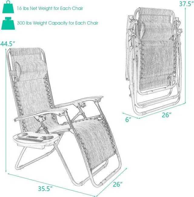 Easy to Store and Transport: With a folding design, the patio reclining chair can be folded easily, so that you can place it in a corner or store it in the trunk. These compact zero gravity chairs are suitable for various occasions, such as patio, poolside, beach, balcony, living room, etc.