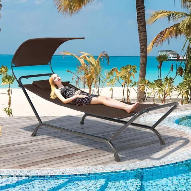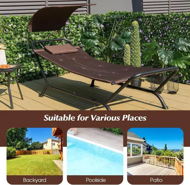 Wide Range of Application: This freestanding hammock with stand and a removable canopy is suitable for various places, like the backyard, poolside, patio, garden, porch, deck, balcony, or indoor space. You sit or lie in it to completely relax your body and mind in the cool breeze.