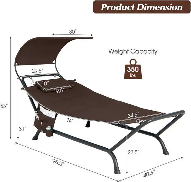 Sunshade Canopy and Storage Bag: This hammock comes with a curved canopy to protect you from the hot sun while you relax outdoors. The waterproof, sun-proof, and wear-resistant polyester fabric supports long-lasting outdoor use. Besides, the side storage pocket is convenient to store your tablet, phone, magazines, or sunglasses and keep them at arm's reach.