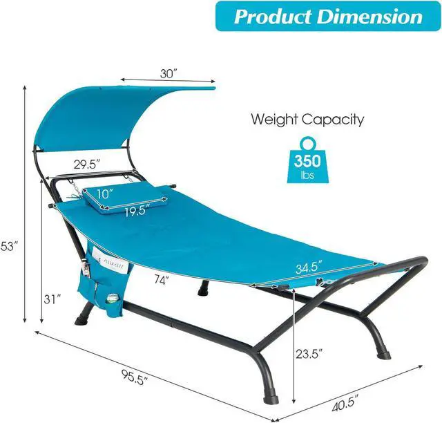 Sunshade Canopy and Storage Bag: This hammock comes with a curved canopy to protect you from the hot sun while you relax outdoors. The waterproof, sun-proof, and wear-resistant polyester fabric supports long-lasting outdoor use. Besides, the side storage pocket is convenient to store your tablet, phone, magazines, or sunglasses and keep them at arm's reach.