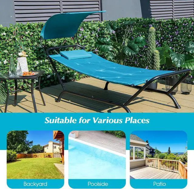 Wide Range of Application: This freestanding hammock with stand and a removable canopy is suitable for various places, like the backyard, poolside, patio, garden, porch, deck, balcony, or indoor space. You sit or lie in it to completely relax your body and mind in the cool breeze.