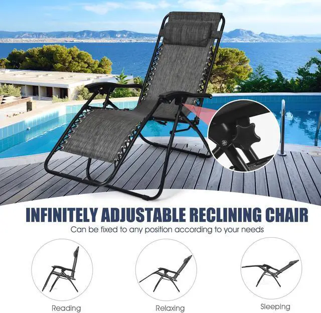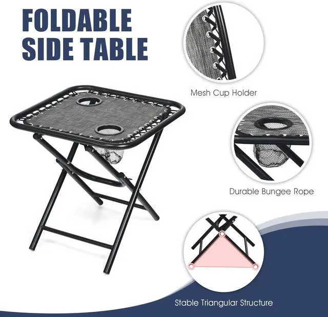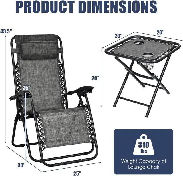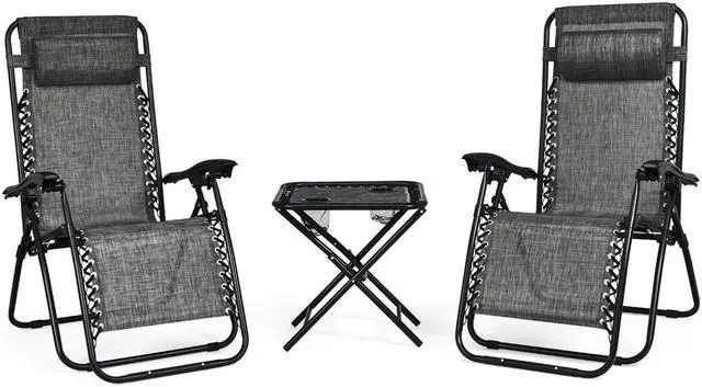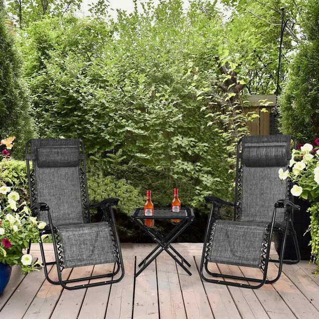SlickBlue 3 Pieces Folding Portable Zero Gravity Reclining Lounge Chairs Table Set