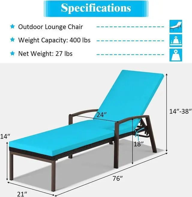 Modern Design and Easy Assembly: The lounge chair with an attractive appearance and modern design can harmonize with the outdoor environment. The classical color also adds charm to your garden, balcony, poolside, and backyard. Featuring detailed instructions, this lounge chair is easy to assemble in a short time.