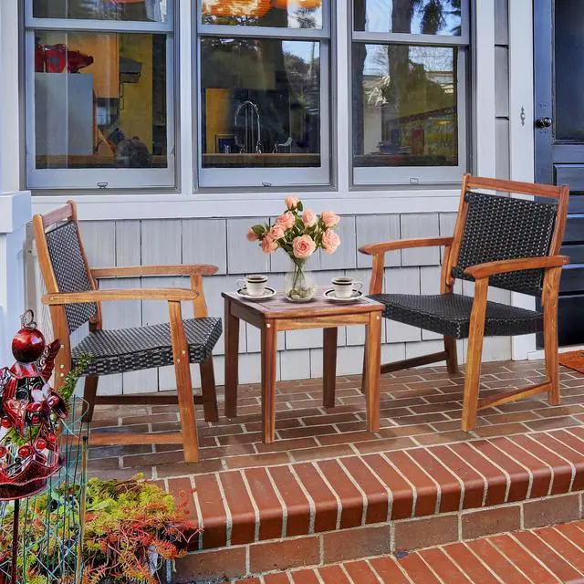Cozy 3-Piece Conversation: This chair has a slow-sloped seat base to ensure comfortable and ergonomic seating. A high back design with armrests also elevates the coziness to the next level. It consists of 2 chairs and a side table for placing drinks and snacks.