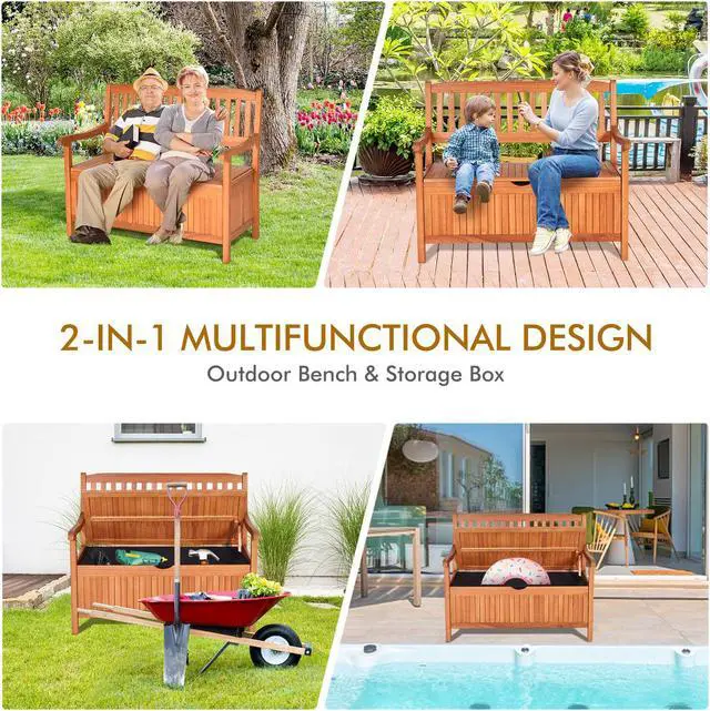 Multi functional Use: This storage bench can be used as a seat for you or provide storage functions. The seat is large enough for 2 people sitting together. Its elegant style is suitable for various outdoor or indoor places such as your patio, backyard, garden, poolside and living room wherever you need it.
