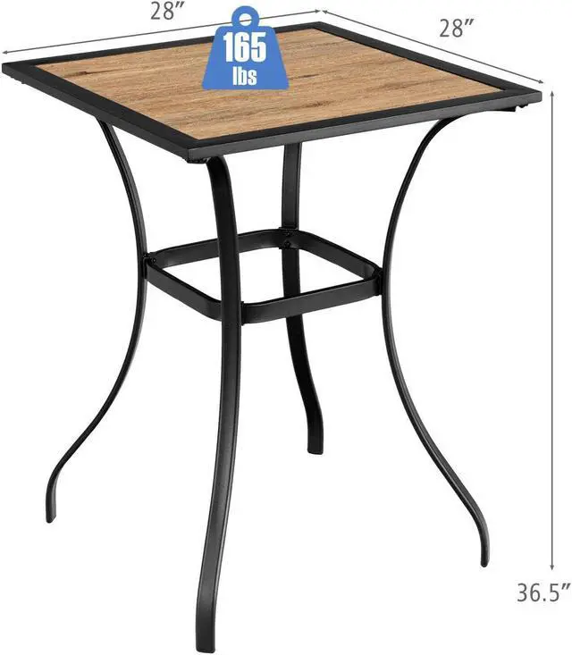 Simple Installation Required: Coming with easy-to-follow assembly instructions and complete accessories, the bar table is quite easy to put together, which won't cost you too much time or effort. And the smooth tabletop makes daily maintenance effortless. Overall dimension: 28" x 28" x 36.5" (L x W x H).