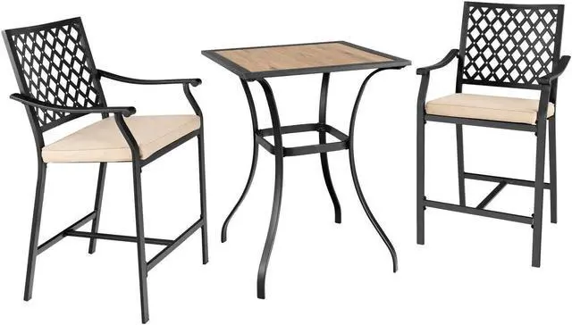 Weather Resistant Patio Bar Table: Made of high-grade steel pipes, the bar table is resistant to deformation and bend. And all the steel pipes are well powder-coated, resisting rust and ensuring long-term using time. Moreover, the tabletop is also of high quality and not easy to be scratched.