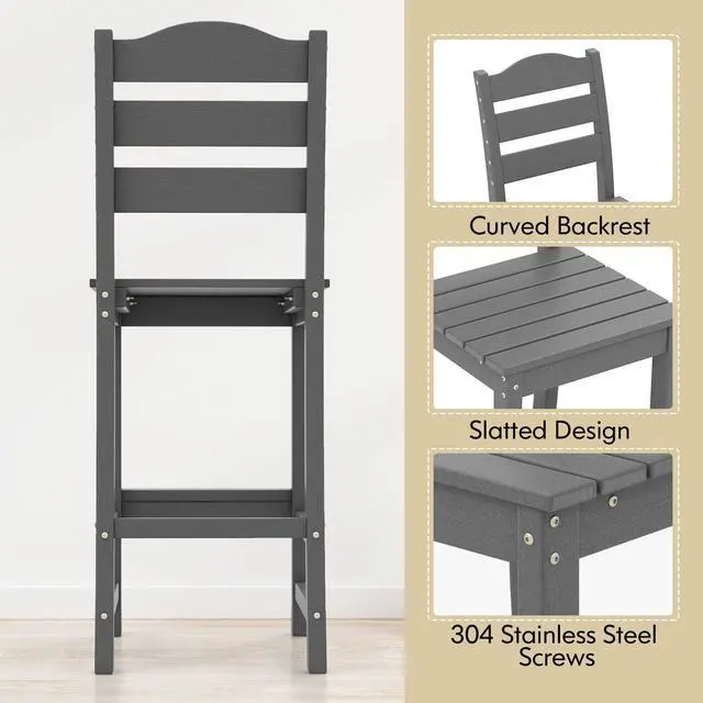 HDPE Material: Different from normal wood that is easy to crack, the selected HDPE material makes this bar stool anti-rack, all-weather and sun-protective to withstand changing weather.