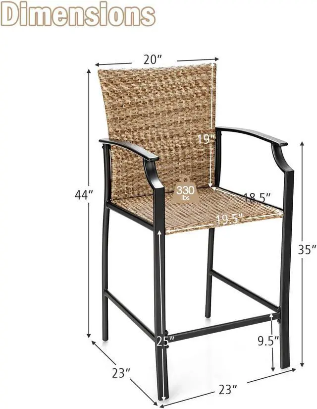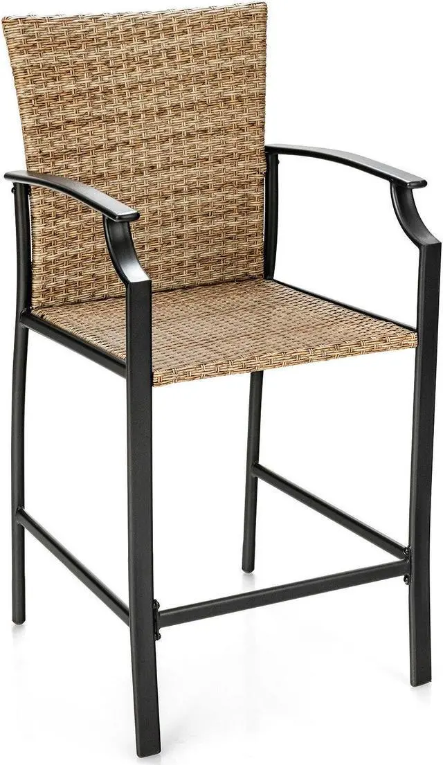 Ergonomic Bar Stools: This patio wicker bar stool will provide comfortable sitting experience for you. The armrests with curved deign and the high backrest give good support to your upper body. And the footrest offers a perfect place to relax your feet. Moreover, the 25" seat height matches most of bar tables.