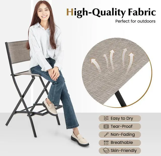 Cosy and Durable Fabric: The bar chairs set comes with selected fabric, which is skin-friendly and breathable, providing you with comfortable sitting experience. What's more, it is easy-to-dry and suitable for outdoor use.