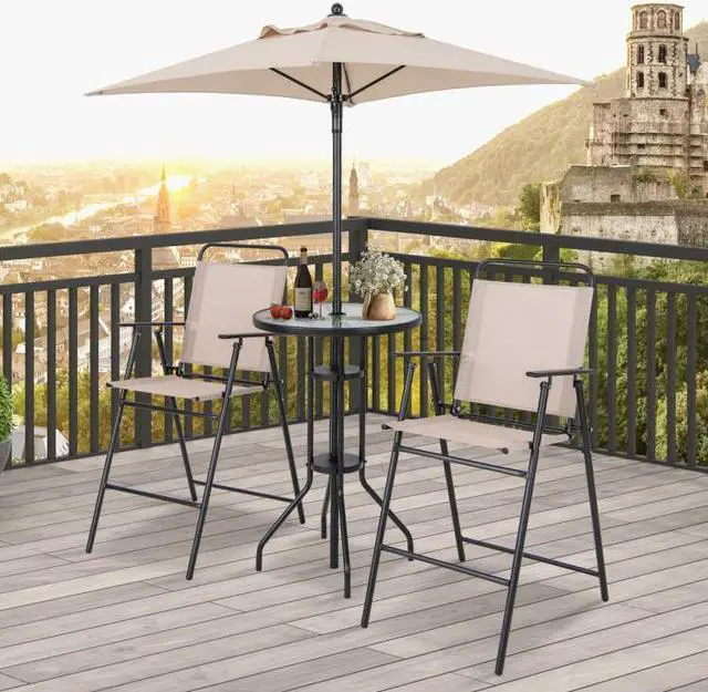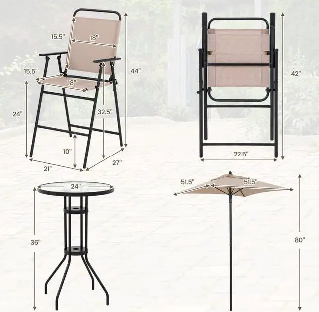 Folding Bar Chairs: The bar set includes 2 folding counter height chairs that save space when not in use. Remember to fix the frame with the safety buckle! Besides, the ergonomic chair with integrated armrests and comfortable footrests will give you true relax.