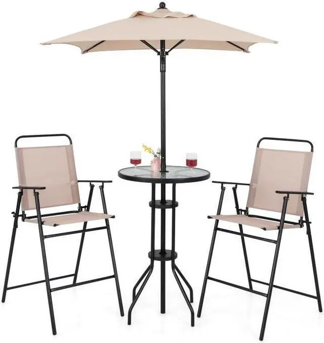 -High-top bar table with 2 fixing brackets to further keep the umbrella in place