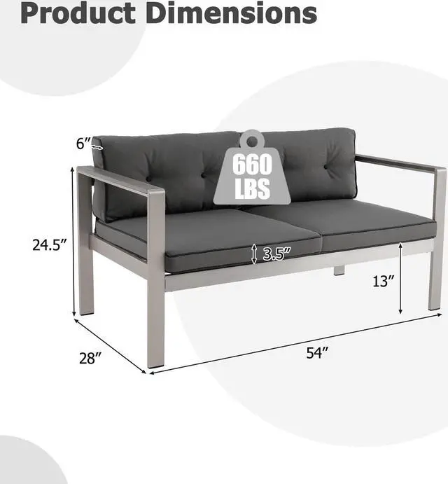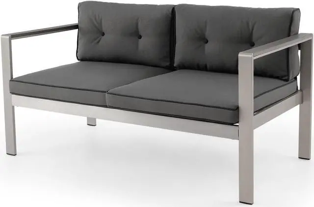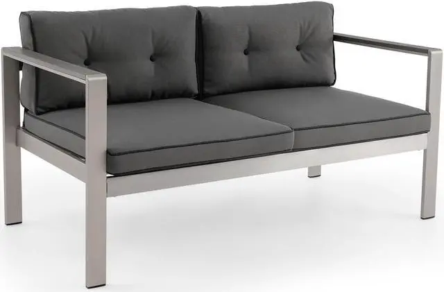 Contemporary Patio Sofa: This 2-person sofa is in classy gray and silver color, looking modern and stylish. The appealing appearance makes it a perfect addition to both indoor and outdoor occasions like backyard, porch and living room.
