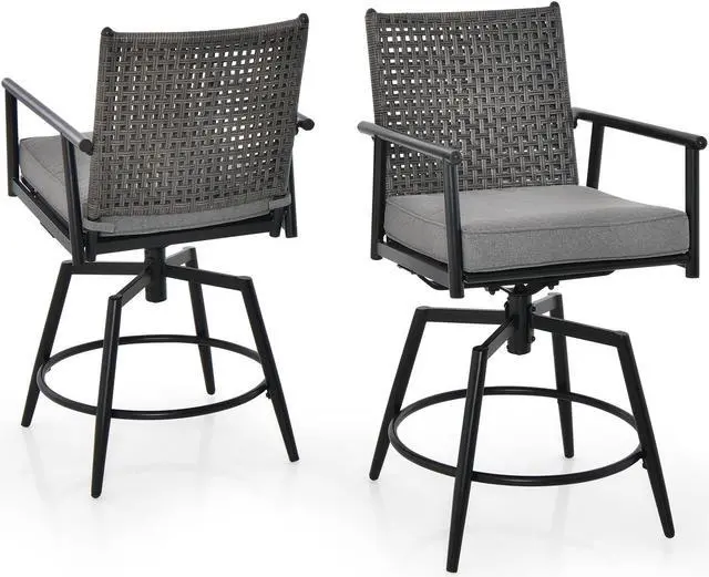 Swivel Seat and Better Comfort: Thanks to the 360° rotating seat, you can easily talk to your friends in different directions. Plus, each bar stool is designed with 9.5" high armrests and a 7.5" high footrest, helping you find your comfiest sitting position.