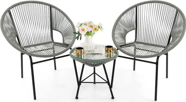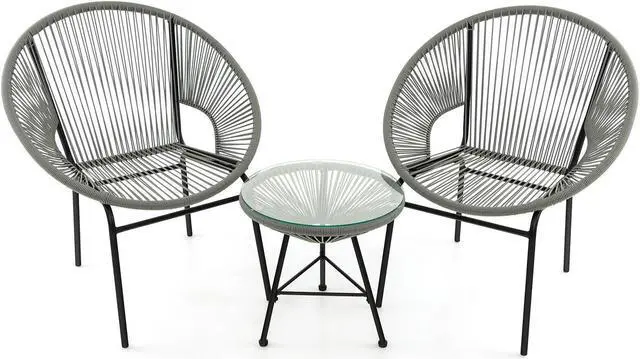 Perfect 3-Piece Patio Set: This patio set consists of 2 comfortable Acapulco chairs and one sturdy table, providing you and your best friend or loved one with a cozy time together. In addition, this toughened glass tabletop allows you to place some fruits, snacks or drinks. Also, it can be used separately as display stand.