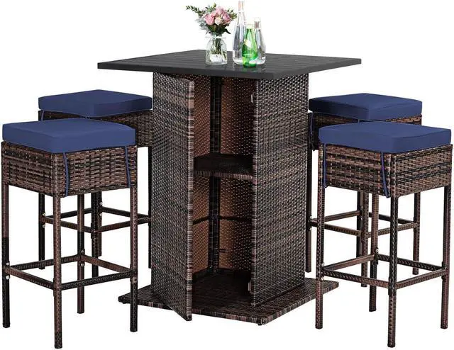 -Enjoys outdoor leisure time with this 5-piece wicker bar set
