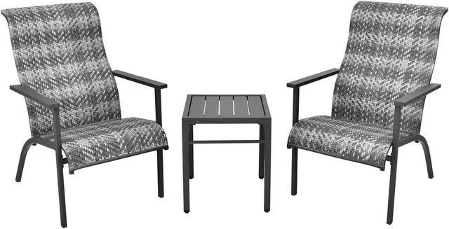 3-piece Modern Bistro Set: This 3-piece outdoor patio furniture set includes 1 coffee table and 2 cozy chairs that are both designed with modern style. Therefore, it blends seamlessly with different decorations while allowing you to enjoy a lazy afternoon with your beloved one.