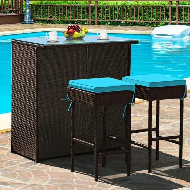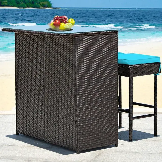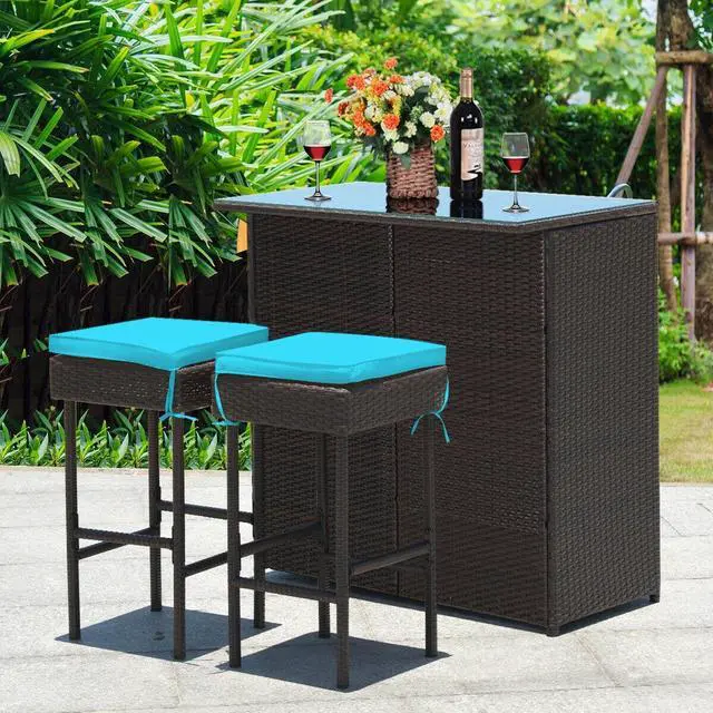 Selected Material with Delicate Workmanship: Made of heavy-duty and power-coated iron, the frame of 3 piece patio bar set won't deform or shake when you use the set. And wrapped with hand-woven PE wicker, the set has a hefty load capacity and can serve you long.