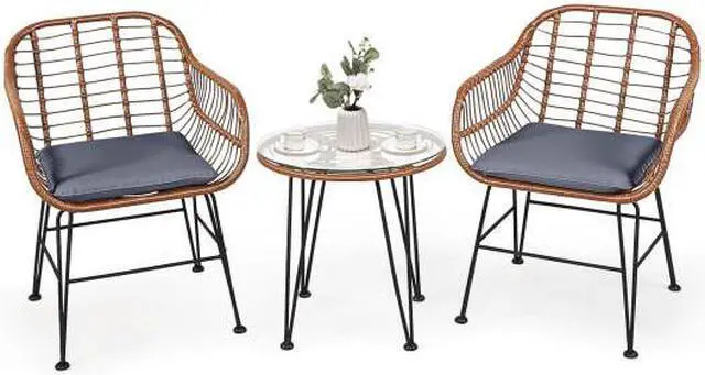 Excellent Durability and Stability: Made of weather-resistant PE rattan and powder-coated steel frame, this 3 pieces patio chair and table set ensure excellent durability to prolong its service life. In addition, the non-slip foot pads are designed to enhance overall stability and protect the floor from scratches.