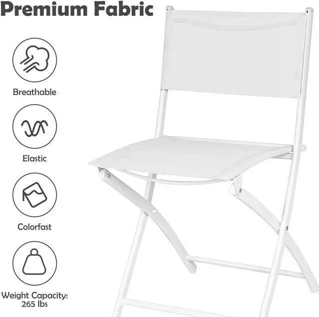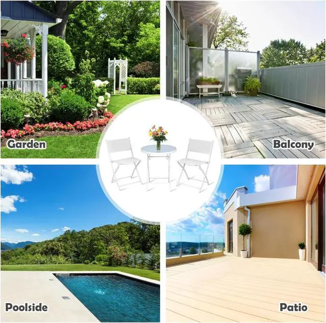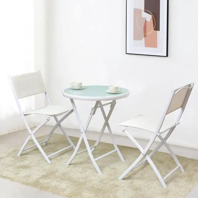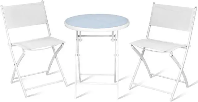 Folding Table and Chairs: A table and two chairs included in the patio bistro furniture set are all foldable, which assures you of all the convenience of usage. It won't occupy much room after being folded up so that you can keep it anywhere at your convenience.
