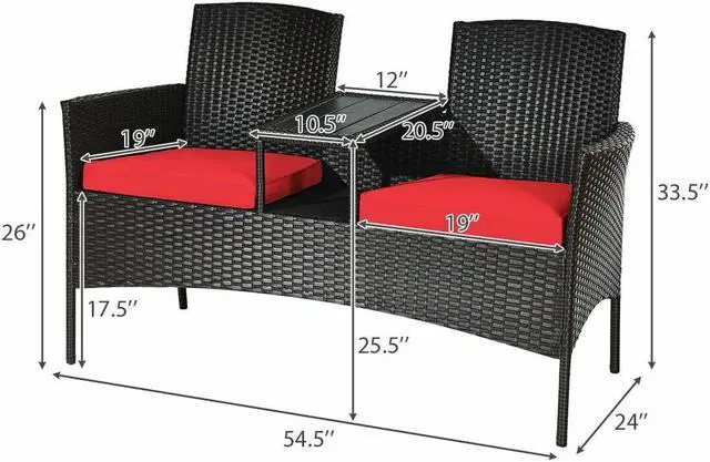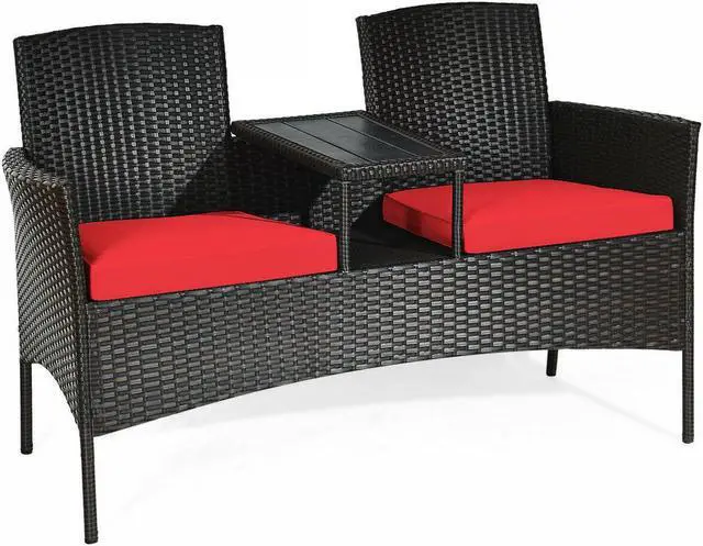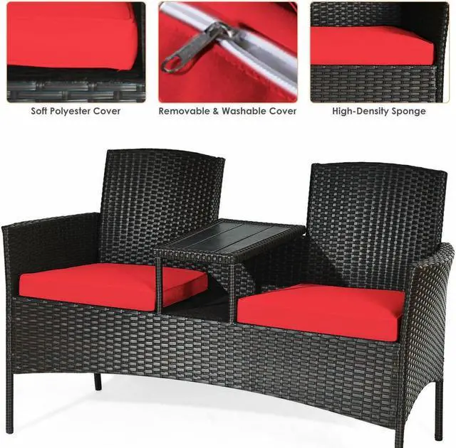 Wide Applications of Unique Style: This outdoor loveseat sofa set in modern and chic style is great for patio, porch, backyard, balcony and poolside. Besides, with built-in coffee table between 2 seats, this patio loveseat sofa is compact and great for small space.
