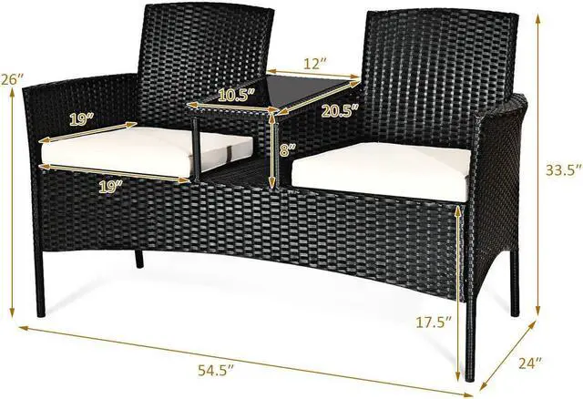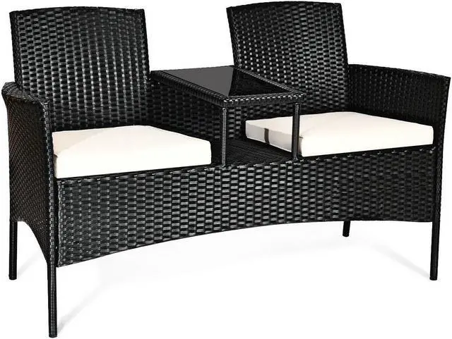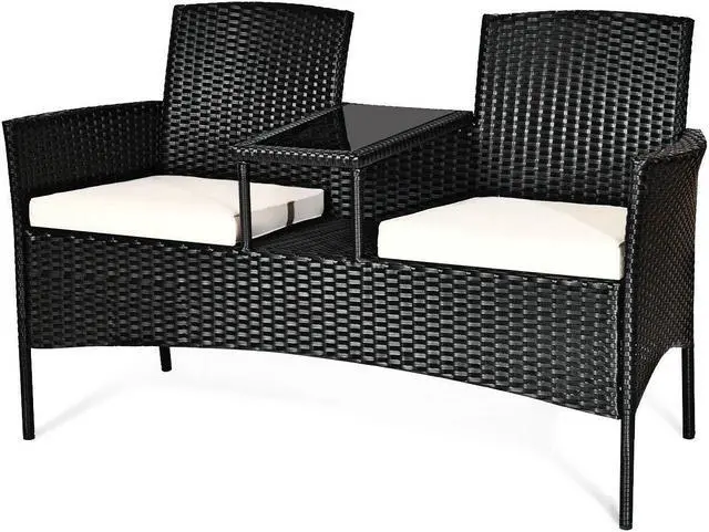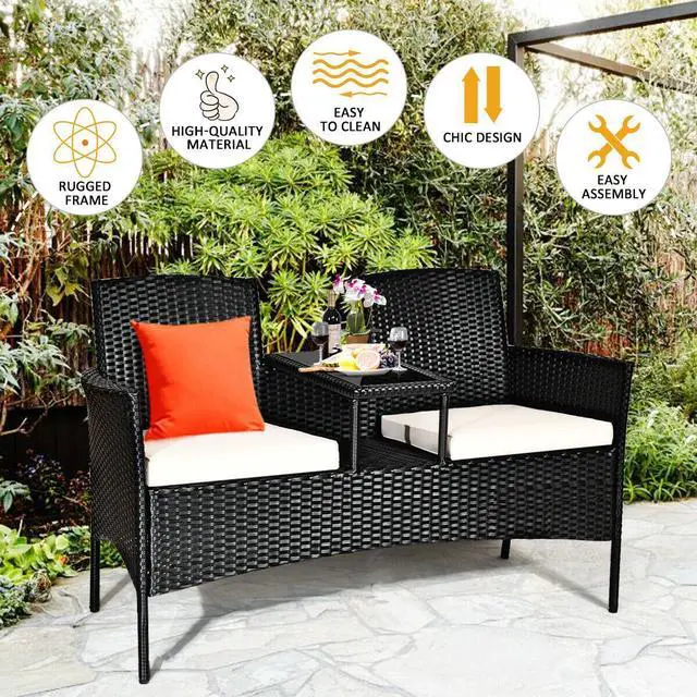 Convenient Chat Table: Featuring a chat table between two seats, this patio conversation set provides enough space for books and cups while without taking up floor space. Besides, the tempered glass tabletop is fixed by suckers that ensure stability and durability.
