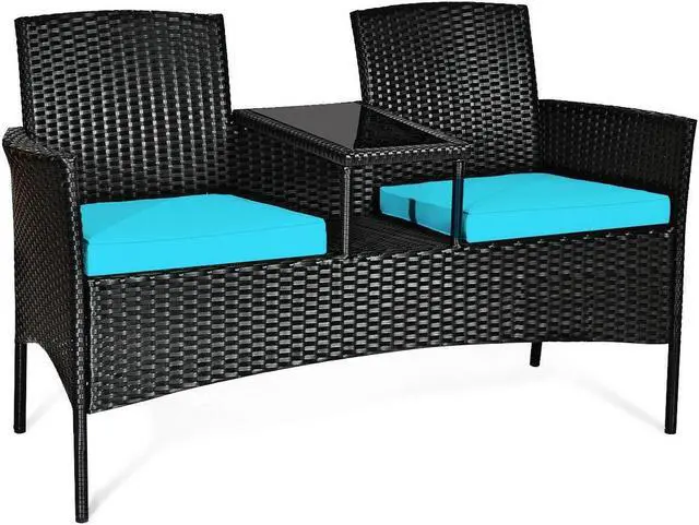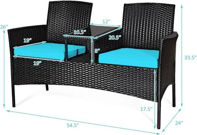 Suitable for Outdoor Use: This patio conversation set has a rugged steel frame which is durable and stable for long time services. Besides, reinforced cross seats and durable feet improve load-bearing. Even better, covered with weather-resistant and fade-resistant PE rattan, this patio conversation set will do well in outdoor.