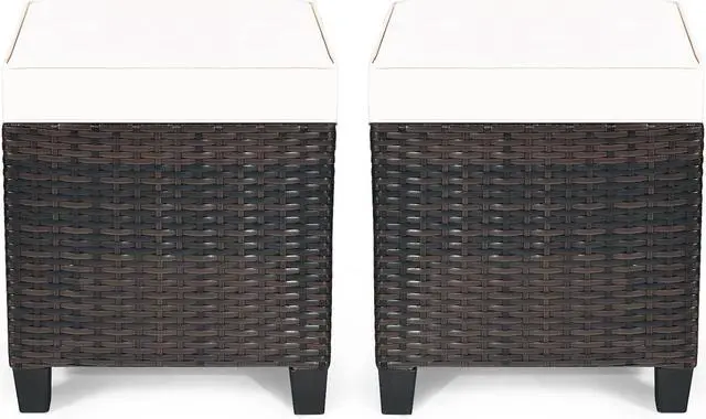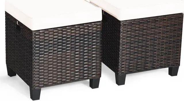 Multifunction and Attractive Design: The set of 2 patio ottoman features concise style in a gradient shade of brown creating awesome looks to décor the patio. And the ottoman set with detachable cushions is suitable for outdoor and indoor use. The ottoman is not only used as a footrest but combines well with other patio sofa sets.