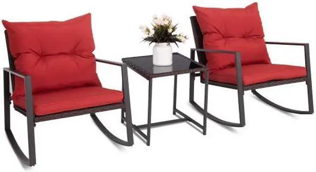 Stylish Rocking Chair Set: This 3-piece set includes 2 rocking chairs and 1 coffee table, making it a perfect addition to your patio, garden, backyard, deck, or balcony. Its classic design suits any home decor style.