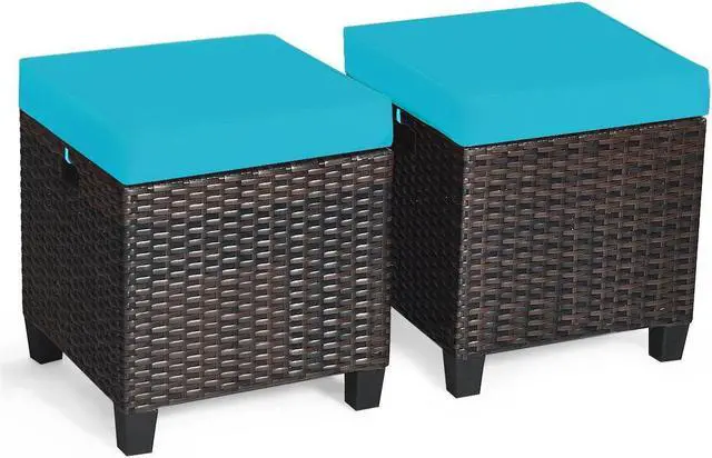 Lightweight and Convenient Ottomans: Crafted with PE rattan and premium steel, the ottoman is solid yet lightweight to maneuver easily from one place to another. What's more, the ottoman has a built-in hollow-handle which plays 2 roles. Besides, the cushions can be fixed to the ottoman by tying it with the ropes. This prevents the cushion from slipping from its place.