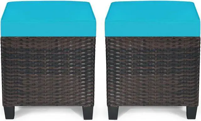 Durable and Sturdy Structure: The outdoor ottoman set is made of a reinforced steel structure that makes it extremely durable. More, wrapped with hand-woven PE rattan, the 2pcs patio ottoman is suitable for years of outdoor use. It is worth mentioning that the four-wedge foot gives more stability to the ottoman and withstands a large load capacity.
